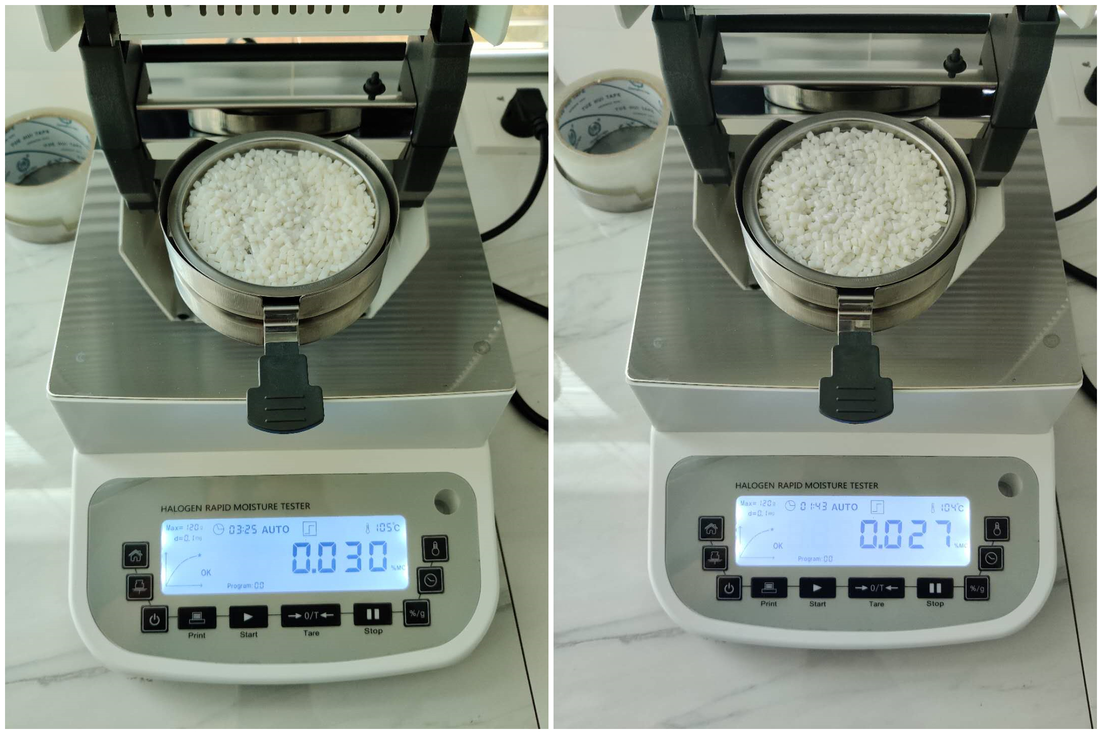 測試儀器:米德QL-720D(稱重精度0.001g,水分解析0.001%)
